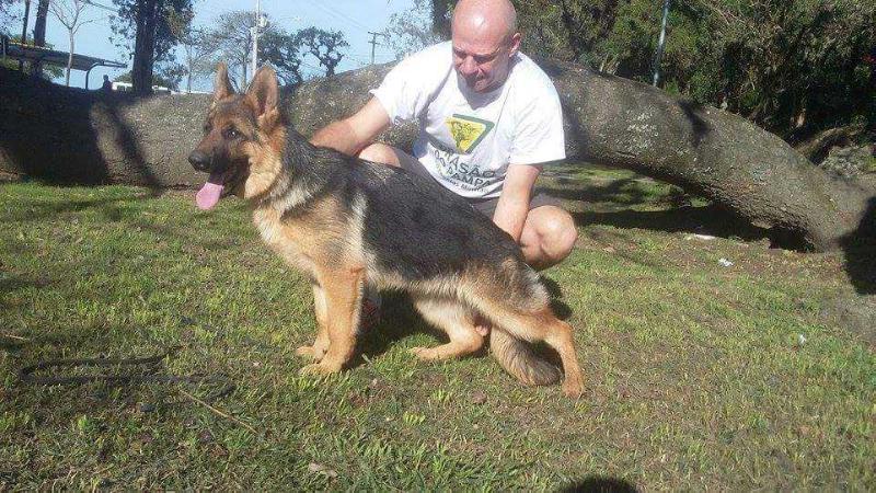 Grande, forte, de muito bom tipo, coloração e pigmentação. Cabeça feminina com dentição e perfeita. Muito boas linhas superior e inferior. Muito boas angulações anteriores e posteriores. Aprumos corretos. Movimenta-se bem. Indiferente ao tiro com coragem e espírito de luta pronunciados. Larga sob comando.